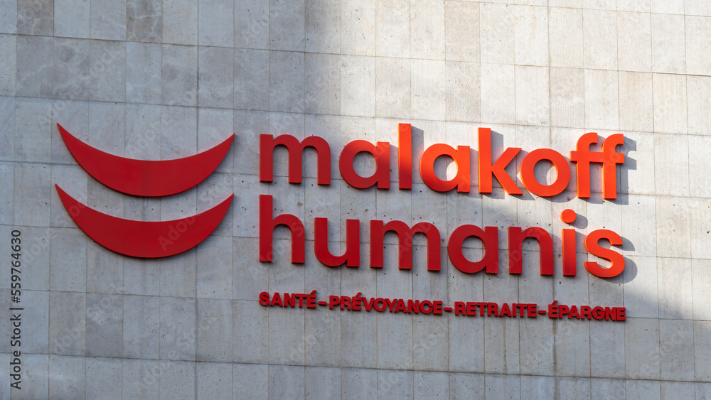 Paris, France 8 janvier 2023 Logo sur le bâtiment du siège social de Malakoff Humanis, groupe