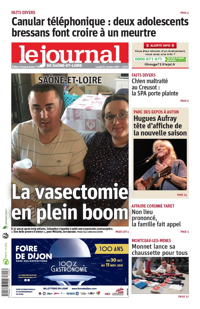 Le Journal de Saône et Loire N°20211025 du 25 octobre 2021 à télécharger sur iPad
